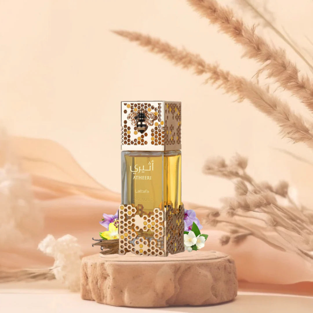 Présenté dans un flacon au design élégant, rehaussé d’accents dorés et d’une bouchon orné d’une abeille, Lattafa Atheeri se distingue autant par son parfum que par son esthétique. Un véritable bijou olfactif, parfait comme idée cadeau ou pour enrichir une collection de parfums orientaux.